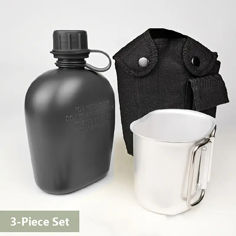 Filtro de agua y cantimplora para asegurar el acceso a agua potable.